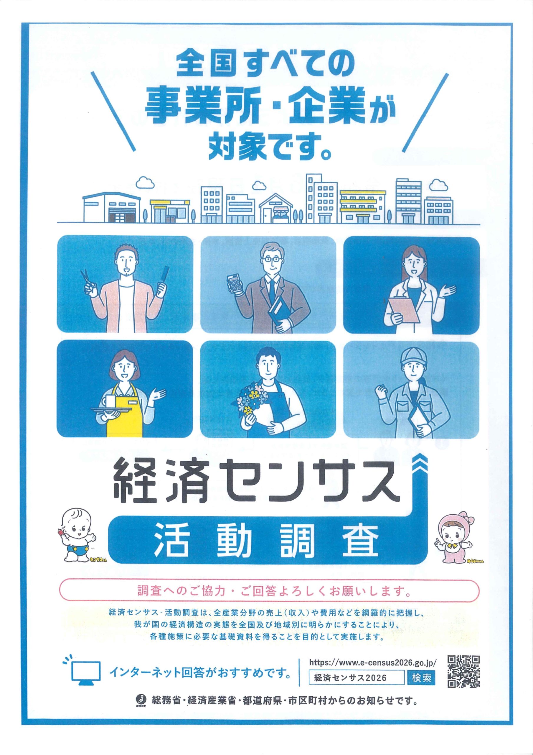 総務省及び経済産業省から「令和8年経済センサス・活動調査」のお知らせです。
